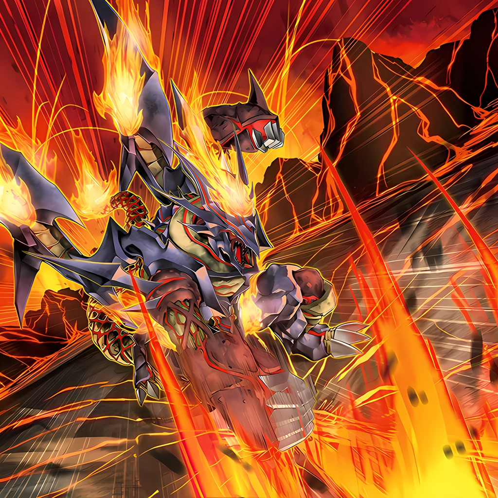 - 將牌組中1隻炎族怪獸送去墓地。若使用這個效果將「火山」怪獸送去了墓地,可以接著適用下述其中一項效果。